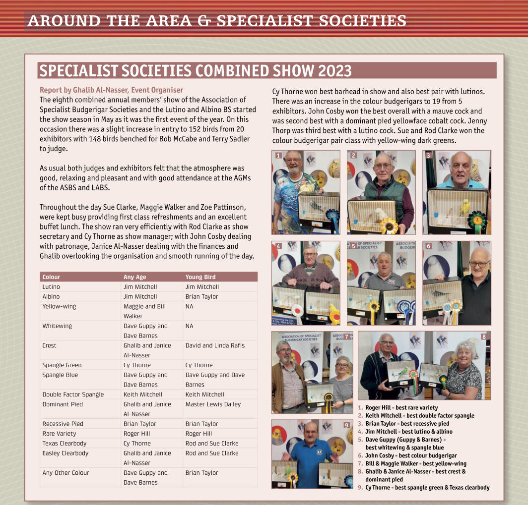 Mould won best barhead in show. There were 21 colour budgerigars